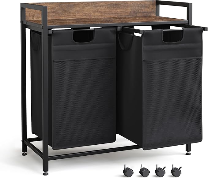 The Mondeer Laundry Basket offers dual 50L compartments and a top storage shelf for added convenience. Its pull-out, removable laundry bags make it easy to transport clothes, while the metal frame and Oxford fabric ensure strength and longevity.